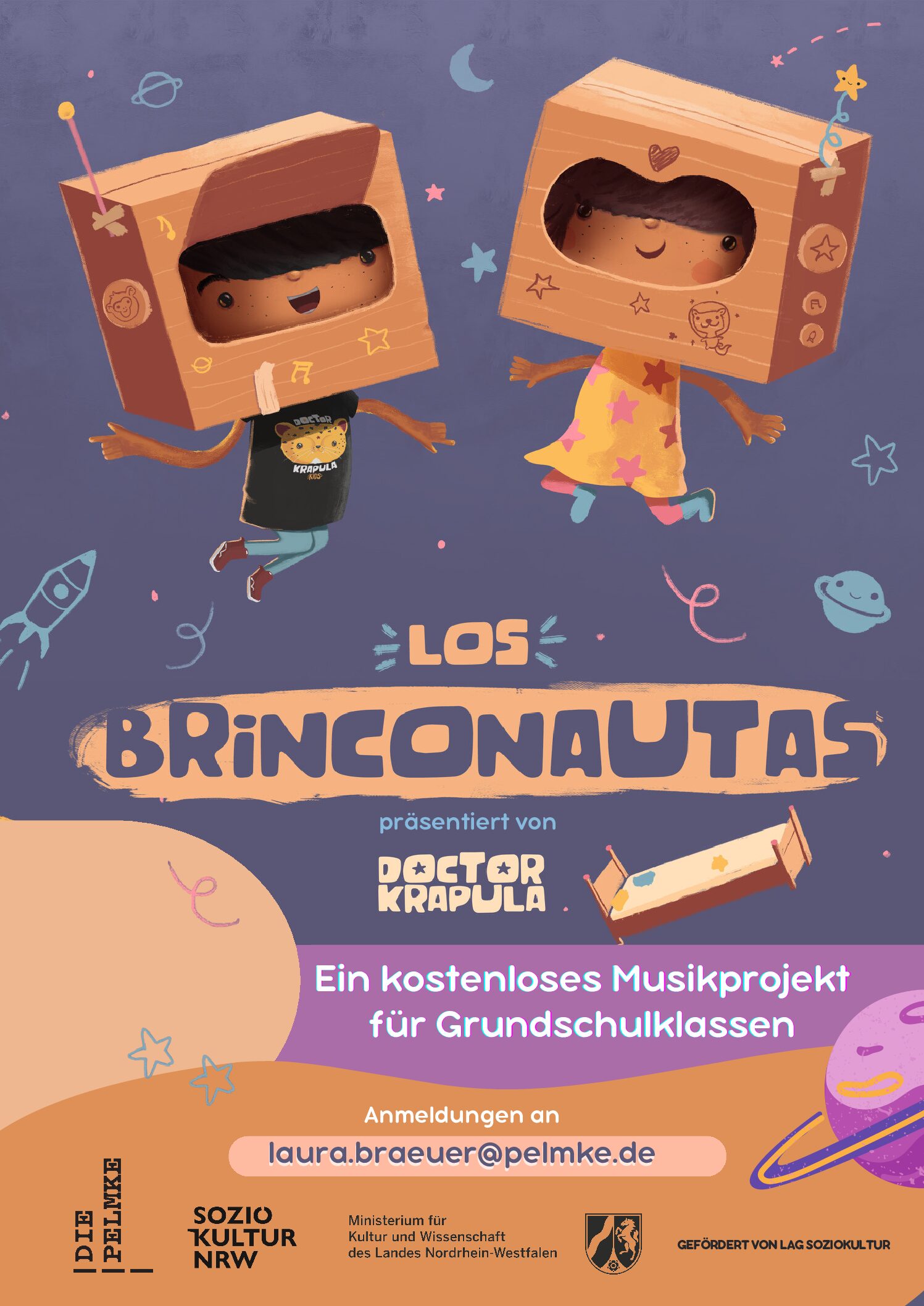 Wir freuen uns, allen Grundschulklassen der Jahrgangsstufen 3 und 4 ein besonderes musikpädagogisches Erlebnis anzubieten: Ein kostenloses Musikprojekt mit der international bekannten kolumbianischen Rockband Doktor Krapula!